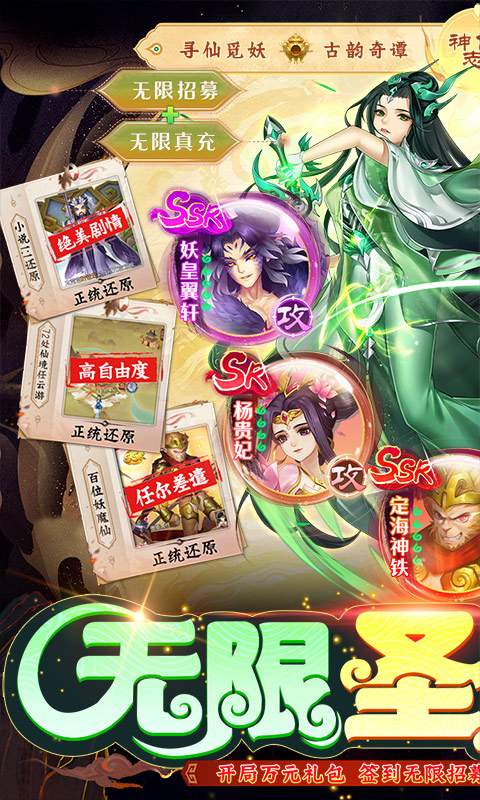 ★登录送5星SSR+妖后文婉,直接战力碾压闯关,还有多种外观、欧皇密钥和真充卡,还有七日成长可获得大量体力、元宝、锦鲤秘宝、SVIP经验卡