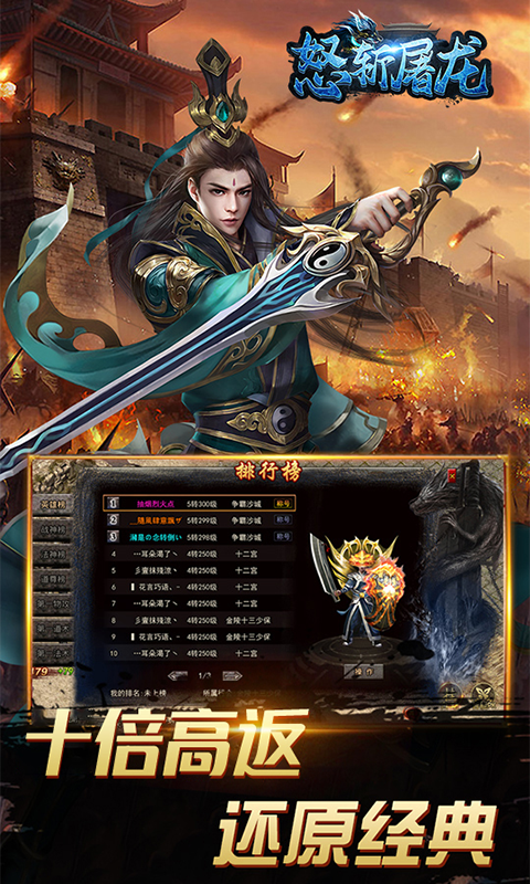 《怒斩屠龙(复古打金高返)》战士单职业刷怪爆装,终极装备小怪也能爆!多种地图,多种玩法,经典复古,全新体验!游戏中还有时装,称号,圣宠等外显系统,增加属性和特殊效果的同时,具有特色外观表现,当最个性的大哥!