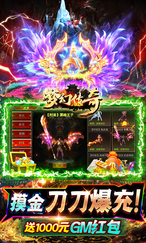 《梦幻传奇(摸金狂飙刷充)》独家摸金狂飙传奇,开局送1000元GM红包+狂飙魂环+孙子兵法+鱼市大佬时装+超级定制称号,密林之下的古国文明地宫,冰雪尘封的金国陵寝,死火山之下炎狱之门,鏖战血尸,开棺摸金,发掘奇珍异宝,体验地道盗墓之旅。死中求活,险中求财!满福利开局,助力狂飙盗墓寻宝!