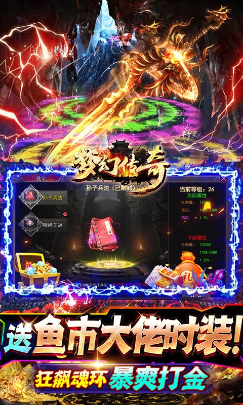 ★上线送1000元GM红包+狂飙魂环+孙子兵法+鱼市大佬时装+定制称号