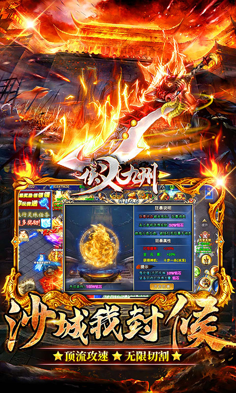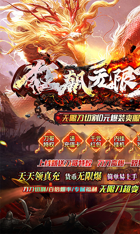 ★上线即送:1000元红包、刀刀切割怪物20万、超大背包、开天斩*1、逐日剑法*1、仙灵宝图*1;