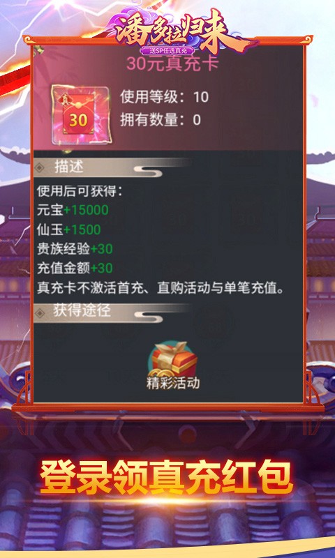 《潘多拉归来(送SP任选真充)》新一代国民级仙侠游戏,绝美仙侠酷炫3D画面,武侠修仙精髓,上线即送万元充值卡,更有海量资源礼包大赠送。剑戟横空金气肃,旌旗映日綵云飞,激情副本,爽快刷怪,急速升级,不一样的玩法,超绚丽的技能,让你拥有前所未有的体验来开启你的修仙之旅吧~