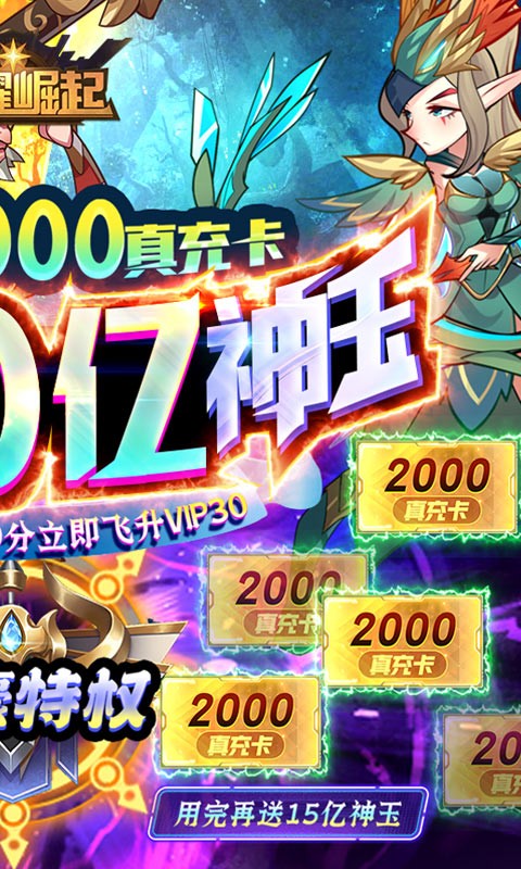 《荣耀崛起》是一款颠覆传统模式的放置卡牌游戏,将地城探索玩法完美融入放置游戏中,让玩家在享受挂机乐趣的同时又能体验到各种地图内的事件;5天内白拿5星最强阵型,开局就送5亿神玉,升级还送千元充值。白漂神壕福利同