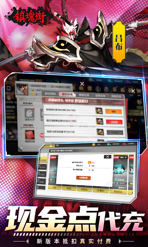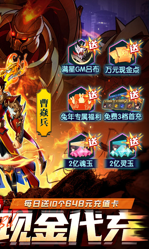 ★后缀说明:完成任务送满星GM吕布,游戏内增加现金点、福利币可与RMB抵扣进行充值