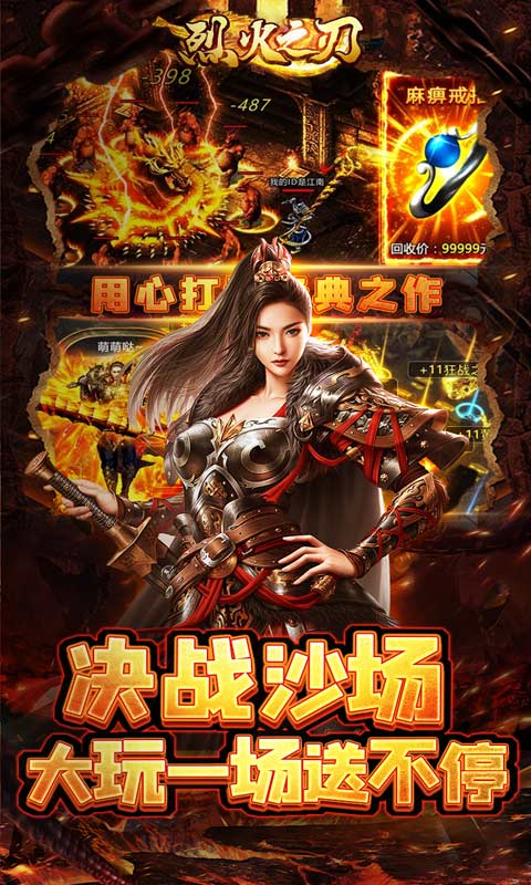 《烈火之刃(机甲哪吒送充)》是一款经典复古传奇手游,散人追梦,超多装备!上线送新手道天装备、兔飞猛进称号、自动拾物、自动回收、神技·炎龙咆哮超值装备!上百张地图精彩纷呈,等你来战!游戏中还有热血沙巴克活动,集齐你的兄弟一起血战!超多奖励等你拿!