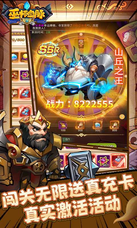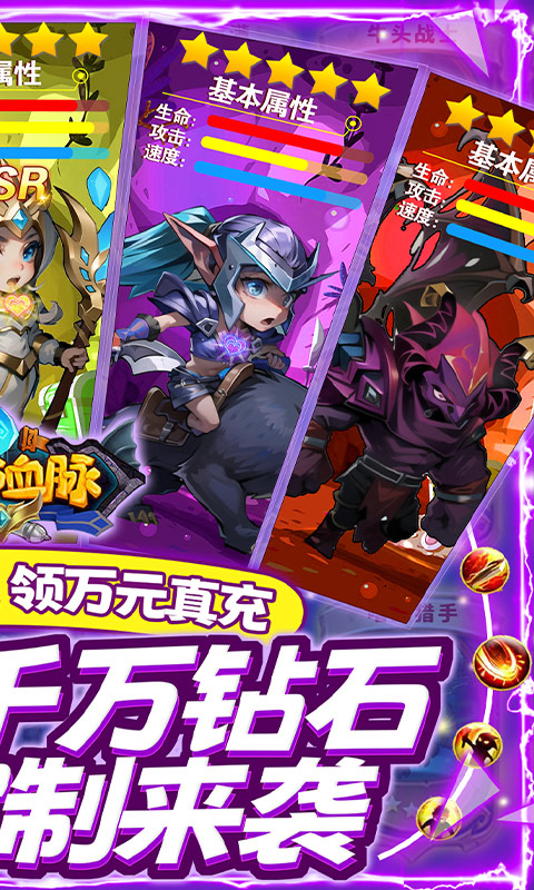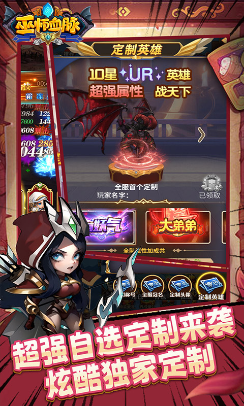《巫师血脉(送无限充抽)》是一款最新的魔幻卡牌游戏,玩家可以选择招募英雄组建你的战队,上线送68888钻石,金币200万,万元充值卡礼包,送千抽自选,你的英雄你做主,福利狂飙。超强定制活动,称号、头像、英雄等都支持定制,超炫超强自选定制来袭。七日登录送炫酷精灵,SSS英雄,超强技能属性加成。千万钻石活动,连续登陆即可领取过千万钻石,海量充值卡。丰富的副本内容等你挑战,不断升级解锁更多玩法,对游戏感兴趣的话不妨点击下载试试!