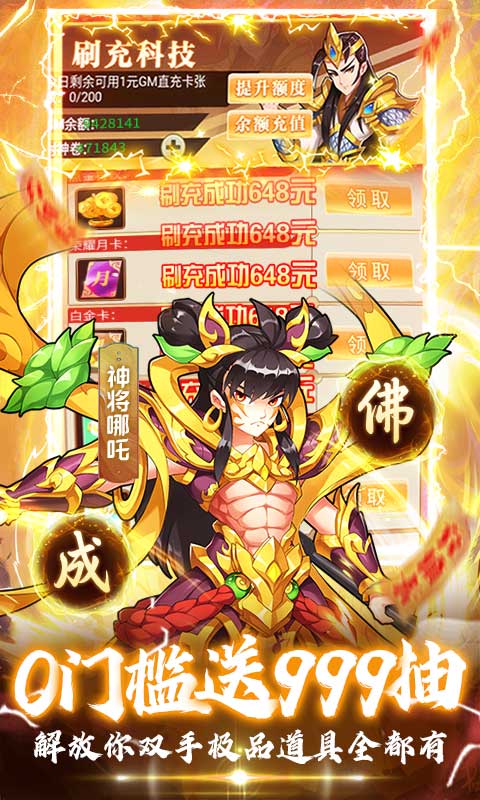 ★免充首充:刷充科技免费激活98元首冲,首日领取顶级仙将,次日领取哪吒极品皮肤