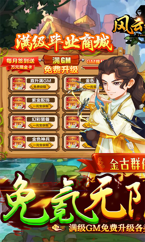 飞雪连天射白鹿,笑书神侠倚碧鸳。一款融合金古武林群侠的手游正式上线。《风云七剑(免氪满级GM商城)》诠释了什么才是武侠卡牌手游。上线海量福利,登陆豪礼不停,在线惊喜不断。更有丰厚通关奖励,一直闯关一直送,丰富资源免费拿,只要敢玩,就敢送!
