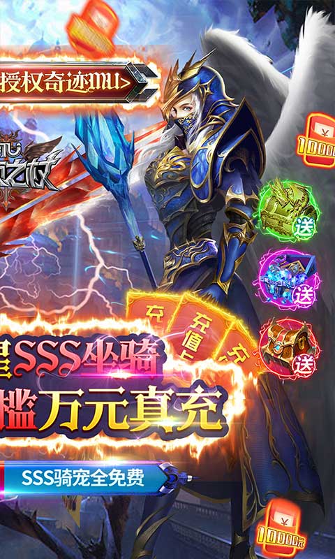 ★创角就送满vip18,1000元充值卡,金币*8888万,SSS满星坐骑-冰霜巨兽、永久皇家骑士时装!