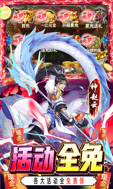 ★游戏内有万元现金活动,升级即可拿上万元现金卡,使用激活VIP经验、获得对应比例元宝并激活游戏内的开服累充活动拿绝世神将顶级符文等,还有极品套装可拿