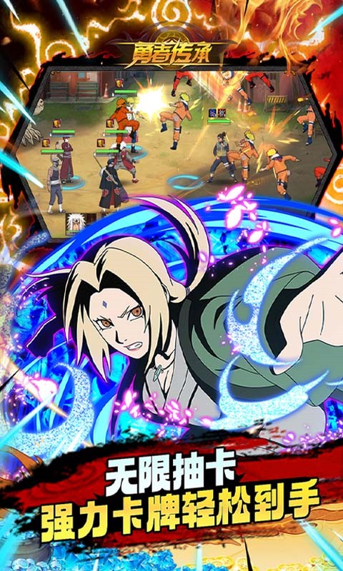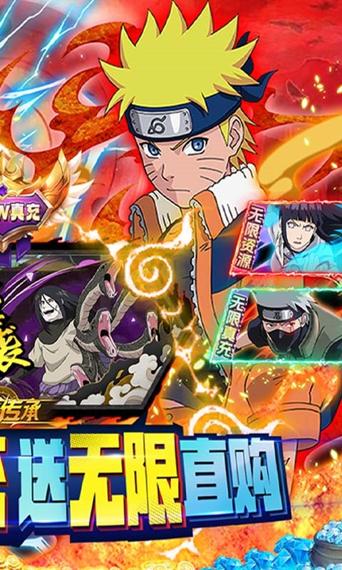 火影题材卡牌游戏《勇者传承(GM无限直购)》火爆来袭!火之意志,格斗重燃!玩家可以化身鸣人、自来也、大蛇丸、晓鼬、波风水门等忍者,体验酣畅淋漓的格斗连打和终极奥义大招。创角送SS级鸣人,GM刷充特权,享无限资源;专属GM商城,海量道具仅需1金币;GM无限直购,强力卡牌轻松到手!