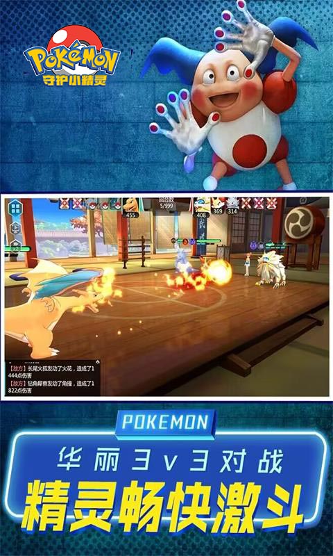 3v3口袋妖怪大作《守护小精灵(口袋妖怪重制)》华丽战斗来袭!上百只原版精灵立体呈现,精美模型再现萌宠风采!3D视界全新定义梦幻口袋冒险!炫酷特效视觉盛宴!回合制战斗自由选择,阵容搭配合理配置!多样精灵养成系统随心组合搭配最强阵容!道馆挑战天王PK,真实线上玩家巅峰对决!趣味交友结伴同行,好友切磋携手创盟!全新玩法复刻童年经典,等你来冒险!