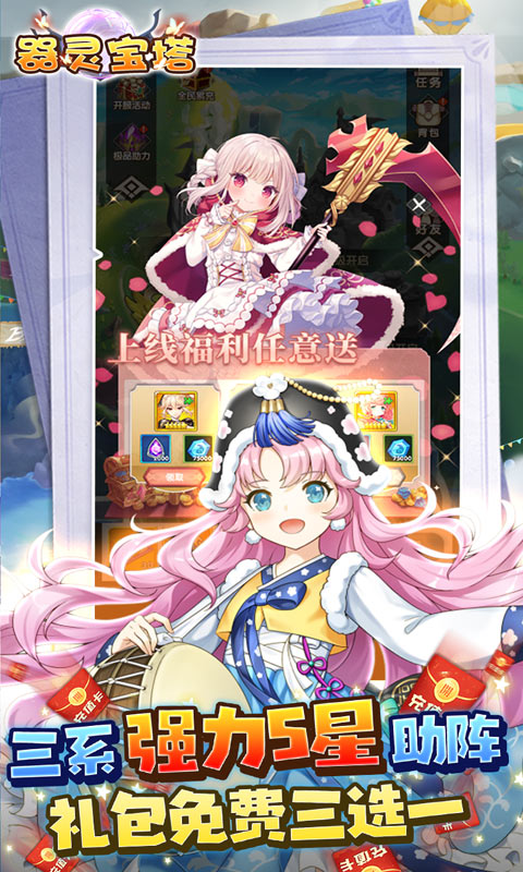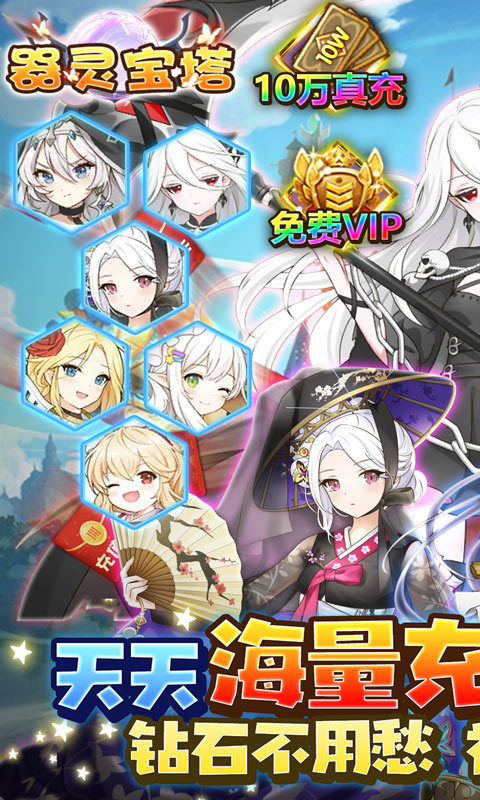 《器灵宝塔(天天十万充值卡)》是一款萌御系二次元卡牌手游,精美的立绘,Q萌的战斗画面。超百位可萌可甜可御的美女英雄与你相伴,携手闯关推图、爬塔、竞技、试炼战场,养成简单,双线进化,你可以走出与众不同的进化路线,更有超多福利助力,一起来闯荡世界吧!