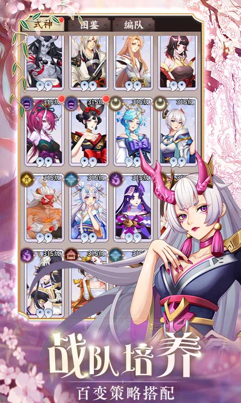 ★山林、河海、部屋、幽都、神、魔六大阵营,丰富的阵营羁绊加成和克制关系,搭配式神们的海量个性技能,策略千变万化!