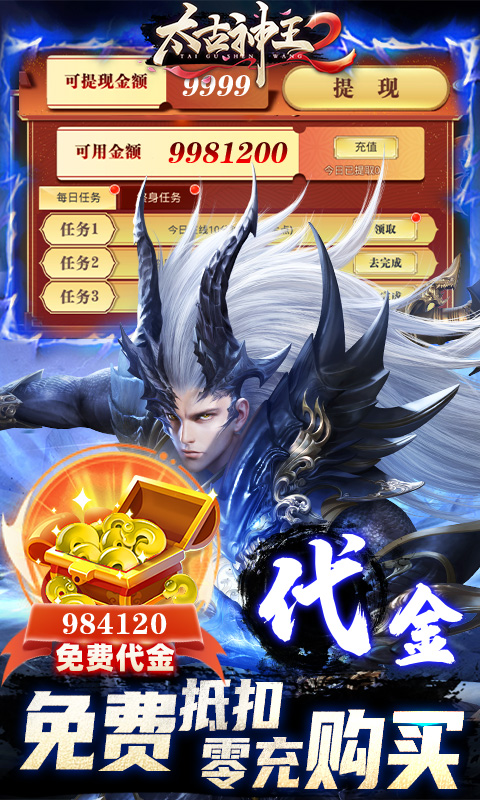 极致炫斗热血MMORPG《太古神王2(免费代金高爆版)》,CG级高品质呈现的酷炫战斗场面,延续经典的爽文真玄幻剧情,顶级团队历时数年打磨,为你开启一次以战止战的热血传说。在这里,你可以选择自己的命运,延续太古传承,力挽狂澜,走出一条属于你的修真大道! 身为神王传承者,你可以一键变身上古神魔,自由飞行探索于八十八万丈方圆的仙域世界,修炼神通进阶技能激活新能力。强力神器,巨兽坐骑,各族神仆正等待召唤。
