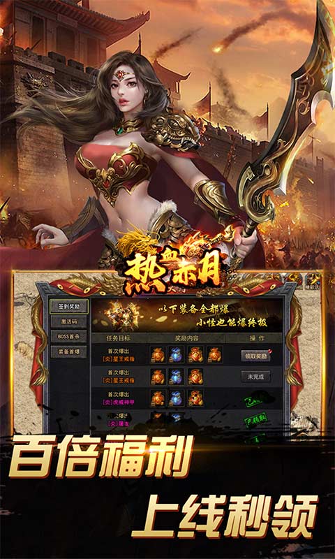 十年情怀,经典重制,真打金传奇《热血赤月(刀刀烈火爽爆充)》完美重现端游写实画质,万人同屏、热血攻城,无限激战!开局送首充,人人刀刀烈火,顶赞会员免费送 ,全图打怪爆真实充值卡!升级快、爆率高、PK爽,带您回归二十年前的初心热血,全民集结,万人攻沙,为您打造真正的热血传奇!