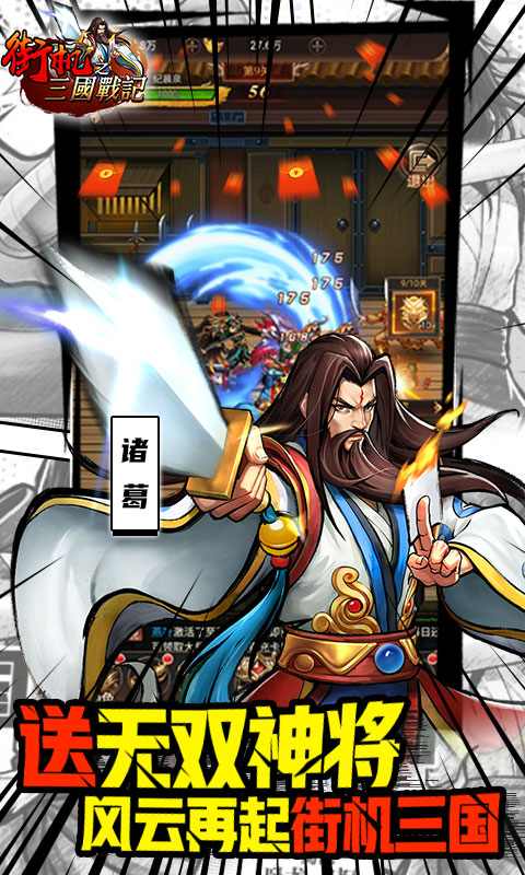 《街机之三国战记(GM余额抵扣)》全新的三国故事,高度还原街机经典场景。开局送GM工具/三十万真充,现金点免支付、神将免费领!街机三国演绎出你心中的武将,超高契合度的人物形象,帅的美的你爱的,统统都可以收入你阵中。巧妙搭配武将技能,摆脱阵容限制,名将也能逆袭!街机副本,惊喜不断,处处彩蛋,告别枯燥!身临其境的剧情章节回味狼烟四起的经典战役,更有著名史诗战役的玩法复刻。想要见识张角平定黄金军、三英战吕布、刺杀董卓,想要刘关张齐肩并进吗?《街机之三国战记(GM余额抵扣)》都能满足你。热血战场号角即将打响,新街机三国命运何去何从,各位英雄准备好了吗?让我们速速跃马提枪,披荆斩棘,纵横街机三国吧!