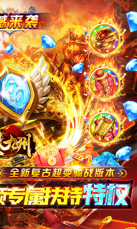 《侠义九州(0元打金骑战版) 》复古无限刀传奇手游,单职业设定,公平开局。全新骑战攻速超变版本,单刷一切BOSS,超高爆率。上线即享百万切割,超高爆率攻速拉满,超炫的技能,既有当年的热血战斗和兄弟情谊,又增添了属于新时代的超爽快节奏,成长和装备等玩法等你体验!既可以兄弟同行,更能一人一刀一骑,开启属于你的传奇之旅,沙城尽在掌握之中!