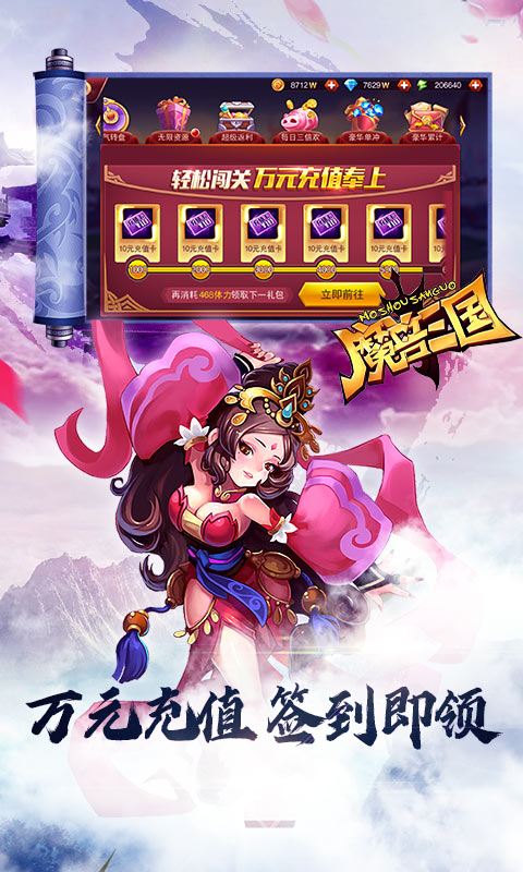 ★冲级任选神将,闯关送万充,扫荡也能领充值!全民还送无限体力和无限金币特权