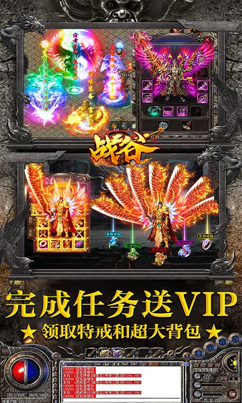 《战谷(攻速打钻版)》进服满攻速,一秒6刀,超爽感受,至尊体验;所有野外地图全部无限制进入,没有VIP门槛;特色时装地图,BOSS爆时装、足迹,N套外观等你爆;爆率超高,小怪也能爆终极;装备绝对保值,高阶装备能合成能升阶,终极能爆能合绝对良心;所有怪物均可爆转生材料,无需付费全靠爆!