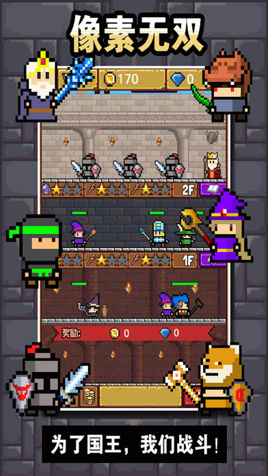 画风非常好,游戏很好玩,需要想办法用合适的职业搭配来阻止怪物杀死国王。游戏不坑,可以看广告解决很多花费!------酱油兔纸► ► ► ► ►------有57个角色,每个都有自己的特点;------超过100种不同的敌人怪物;------19种不同的技能;------多种职业的英雄进行团队配合才是胜利的关键------每位英雄都有不同的主动和被动技能► ► ► ► ►城堡,国王,怪物,骑兵,魔法师......。在50个关卡中,你会成为最后的胜利者吗?一旦你通关后将开启一个强大的无限游戏模式。如果你死了要怎么做不要惊讶;复古游戏要的是乐趣,所以你在本游戏中不会出现打卡式的游戏模式和神烦的屠龙刀......。