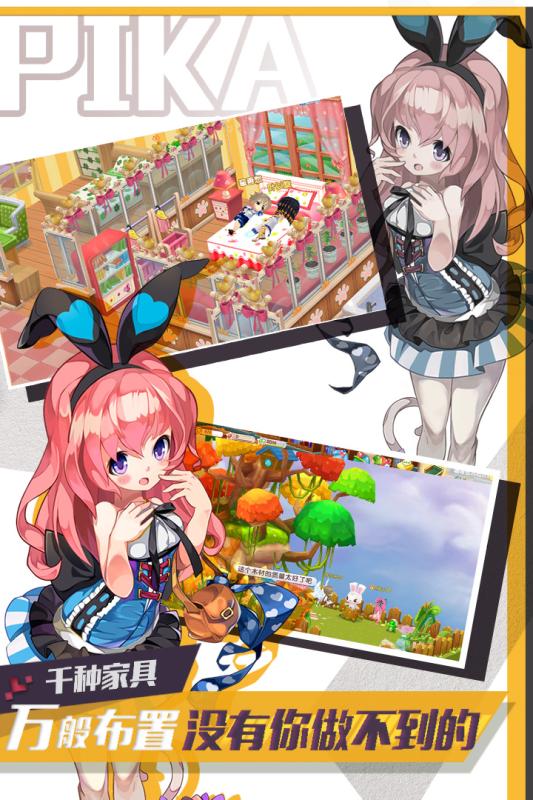 《皮卡堂3D》由皮卡堂页游原班人马倾情打造,在延续网页版《皮卡堂》经典玩法的基础上,基于3D引擎打造了一个更加开放更加自由的虚拟世界。在皮卡堂3D的世界中,你可以在森林探险、在矿洞寻宝、在渔场垂钓,从而获得各种材料和珍宝,并在魔法工坊中合成出千姿百态的家具和服装;你可以按照自己的奇思妙想布置出各式各样的温馨小屋、堂皇豪宅,甚至是庭院、密室、城堡、遗迹,一切随心所欲无限无制。你也可以叫上众多好友建立