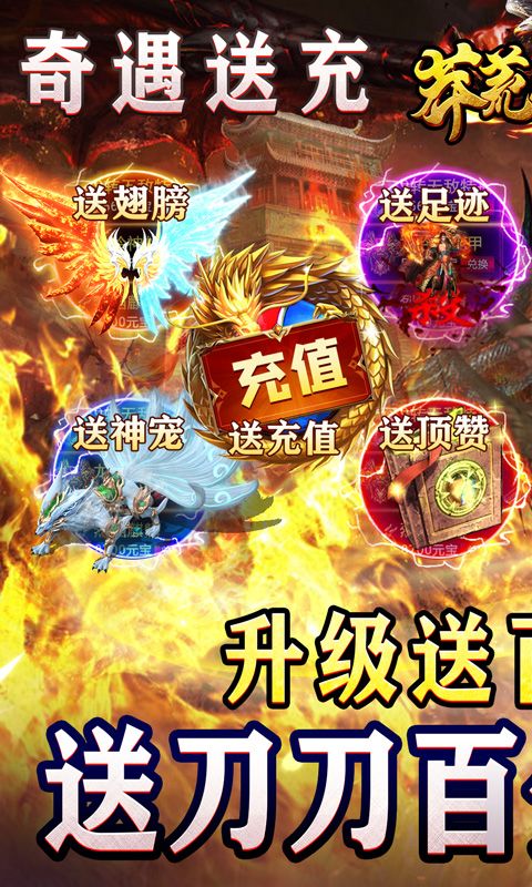 《莽荒传奇(送充超超超变)》是一款全新剑仙传奇手游,免费打金刷充福利版全新来袭。以斩妖除魔为背景,结合了神器、羽翼、神宠、足迹、幻兽、御兽光环等玩法,剧情丰富有搞头,技能特效有讲究,之间冒险纵横,热血的战斗为你带来超爽的体验!炫丽的技能秀翻全场,精准的打击斗智斗勇。在玩法方面,以打金、升级、爆装、抢沙等传奇核心玩法为主。快快加入吧与兄弟们征战吧,成就神界最强战士!变身传奇修士,一起渡劫除妖伏魔!顶赞免费,冲级送万元真充,奇遇BOSS,副本地下城挑战。开局刀速拉满,全屏爆光柱,送翅膀、送神宠、送足迹,无套路,爽到爆的超变,嗨到起飞的体验!上线送神器,每日签到领海量豪礼,超值活动超高回报,真充无限爆刷无限领!兄弟快上线,真热血传奇邀你来战!