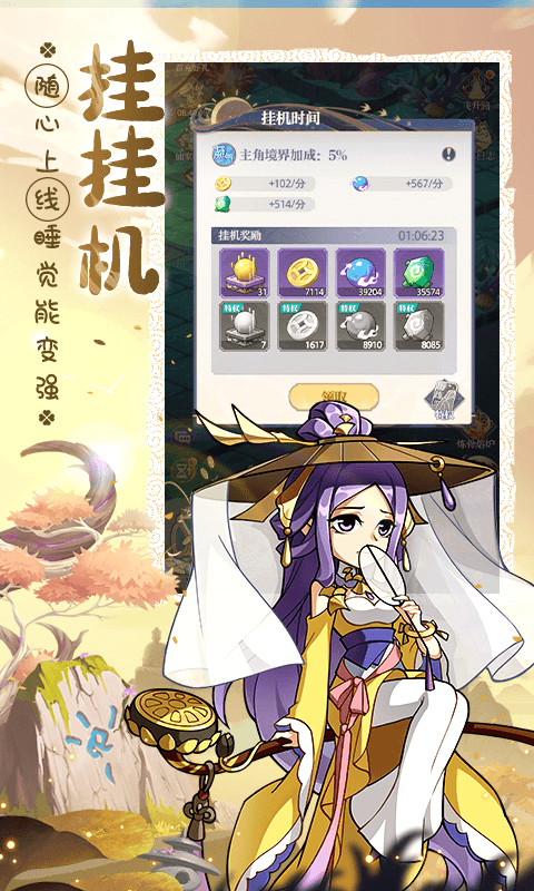 大风泱泱,大潮滂滂,携灵兽小白,穿越连通时空的建木神树,信步五千年历史长河,历经人界沧桑,邂逅千古名士,创造属于“人界之灵”的——《炼仙传说》。 《炼仙传说》是一款新派国风修仙放置手游。充值比例1:10,在游戏中,宇宙纪元招歹人破坏,气运混乱,神器损毁,只有将神器修复才能镇慑混乱的人界气运流转,恢复往日的平静。玩家扮演的“人界之灵”就此穿越纪元,与一众仙灵并肩战斗,担负起这样的光荣使命。在游戏过程中玩家可以通过历练闯关、招募等途径,结识历史上知名人物幻化而成的仙灵,并和他们成为伙伴,在他们的帮助下穿越纪元修复神器,与破坏神器的幕后黑手抗争。通过游戏玩家不仅可以了解历史上的知名典故,同时还能尽享放置游戏的乐趣。