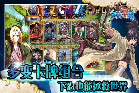 连续登陆就送神秘S级极品卡牌!每日登陆更有不同奖励。完美呈现原画角色与场景,忠实再现原著剧情与忍术技能。你可以带领一众忍界精英在各次重要战斗中一展身手。上至历代火影下至各村下忍都将成为你的麾下一员。