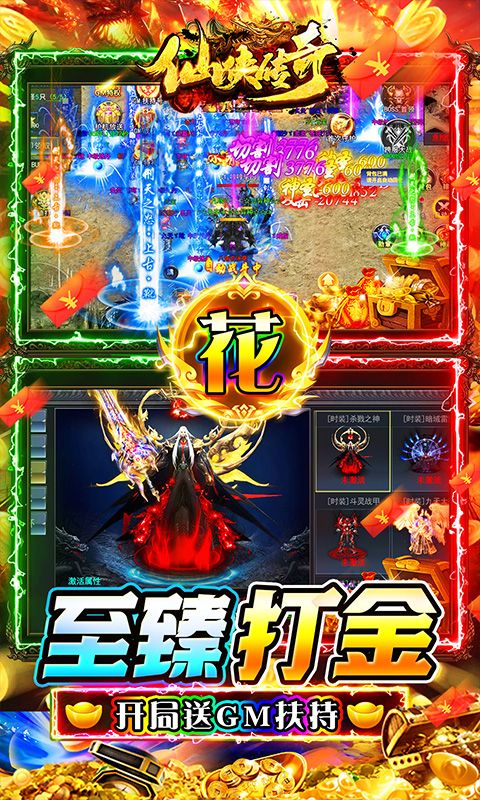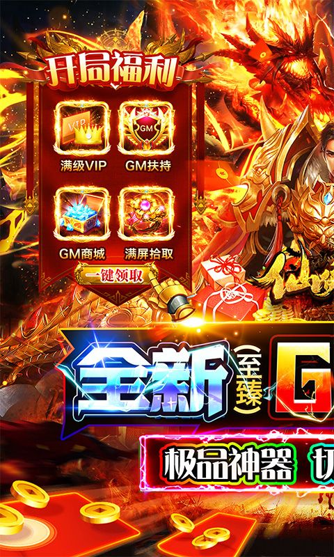 《仙侠传奇(GM至臻金装打金)》全新金装传奇,开局送GM扶持+全屏拾取!全新至臻打金,全新双重GM商城!全图爆真实充值,新手地图爆满背包红包+元宝、绝对真实福利版本,超值豪礼领不停!送满级VIP,免费送投资,每日礼包,惊喜充值返利!满福利开局,刀刀爆充!全新切割伤害翻倍,极致攻速伤害!极品吸血武器,刀刀暴击,刀刀吸血!神装降世,魔血加伤,秒天秒地,满屏爆光柱!装备全靠打,小怪爆终极!
