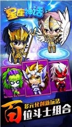 星座神话是一款以动漫黄金圣斗士里人物为题材的卡牌收集类游戏,玩家可以挑选自己喜欢的圣斗士来组建出一只实力强劲的战斗队伍,与其他玩家进行PK对决。 游戏还原了圣斗士的经典剧情,超过数百种人物卡牌,多样化的战斗技能,华丽精美的画面制作,灵活有趣的多人对战模式,一定让你爱不释手。 喜欢这类游戏的玩家快来下载试试吧! 星座神话游戏特色 1、策略回合制的战斗玩法,简单有趣; 2、收集各路神话英雄,迎战关卡BOOS; 3、百人公会大战,瞬间你的战斗激情!