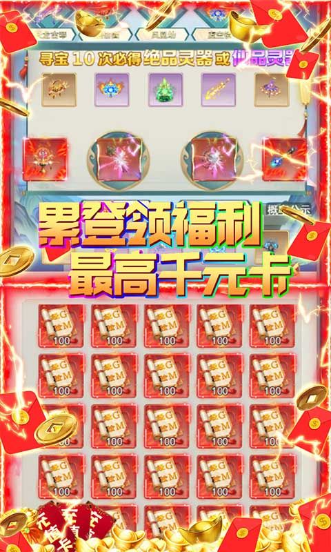 ★累登领福利:累积七天登录,前六天每日可领百元卡,第七天直领千元