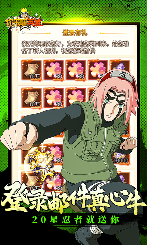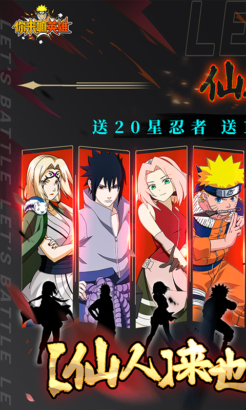 《你来嘛英雄(20星仙人暴刷充)》仙人版超燃挂机火影大作正式上线;福利爆炸,真正做到“无门槛,干火影”;上线送3个20星忍者,影级待遇直接冲!仙人模式激燃登场,强化、强化、再强化,真的凶残;每天送100连抽霸服豪礼不容错过;缉拿晓组织套娃式奖励拿到手软;福利真的好,充值无门槛!