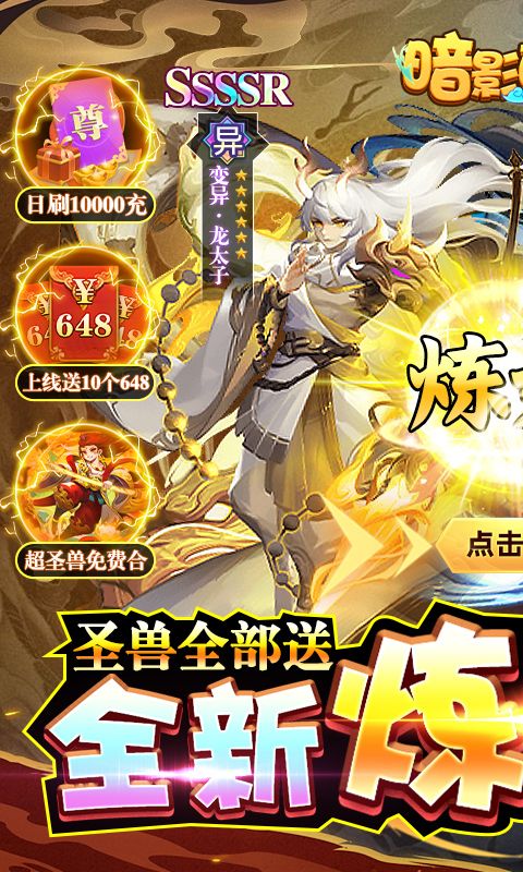 《暗影西游(无限炼妖满神宠)》是一款经典的西游题材的回合制H5手游,游戏开局送GM修改器,通过闯关,打怪获得欧皇真充卡来进行充值,破解超值首充礼包,现金点充值直接拿到游戏内所有满技能神兽,华丽的特效时装,加上超爽的神兽培养体验,带你感受开局即毕业的爽快体验!