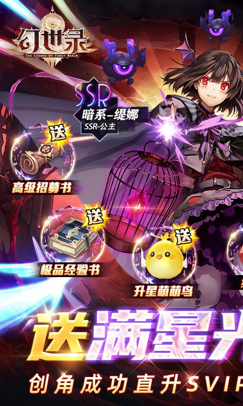 ★登录送SVIP5,充值比例:1:2000,超强群体输出卡,百次抽卡、强力符文和海量红水晶