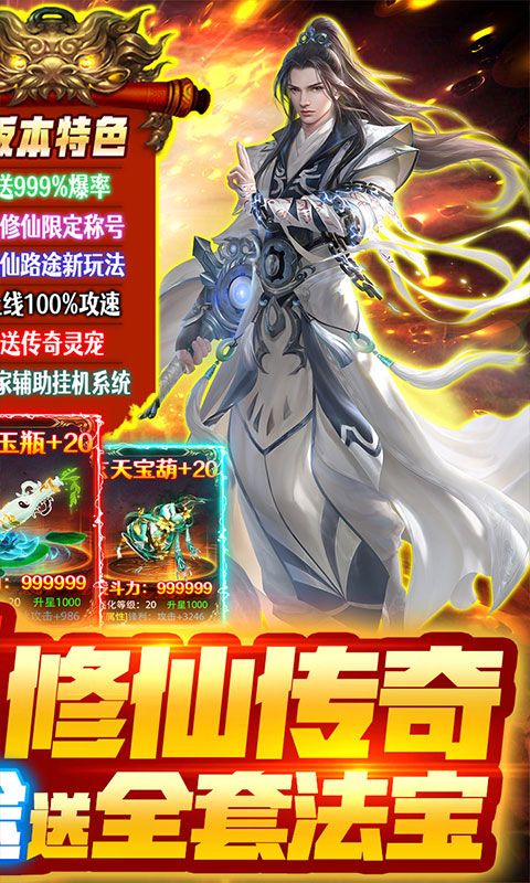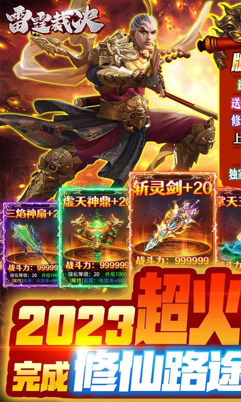 《雷霆裁决(送修仙满特权)》上线送38888绑定灵石、200W绑定元宝、限定称号、自动回收和全屏拾取(体验);送999%爆率,万物皆可爆,且看凡人如何稳健发展;送传奇灵宠,宠物快速拾取,伴你证道成仙。完成修仙路途解锁满级VIP,爆率狂飙,再送全套修仙法宝。上线100%攻速,装备全靠打,神装小怪爆!时装免费爆,击杀BOSS可掉落炫酷时装。