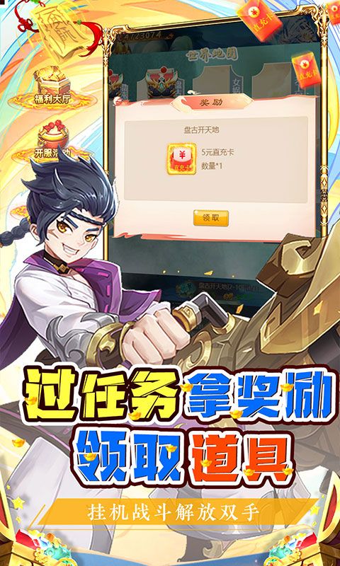 ★上线福利:1亿银两、飞翼萌狮皮肤*1、神魔令牌*500和SSSSR最强伙伴礼包(雷虎、少司命、睚眦、洛水仙)