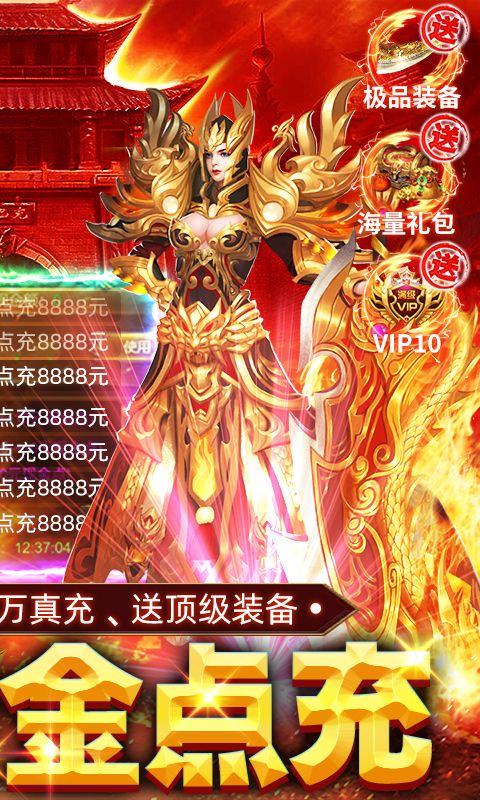 ★创角即送:送VIP13、绝版称号、顶级时装一套、炫酷羽翼、888888元宝、神装碎片*200