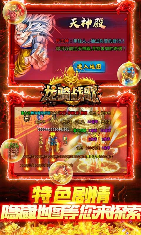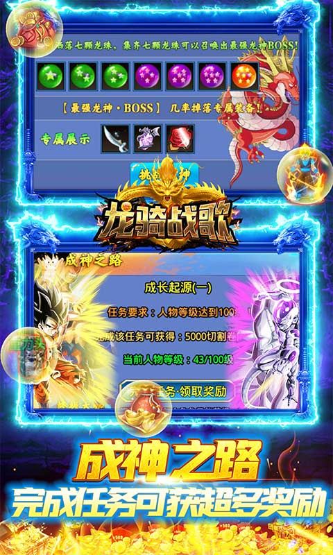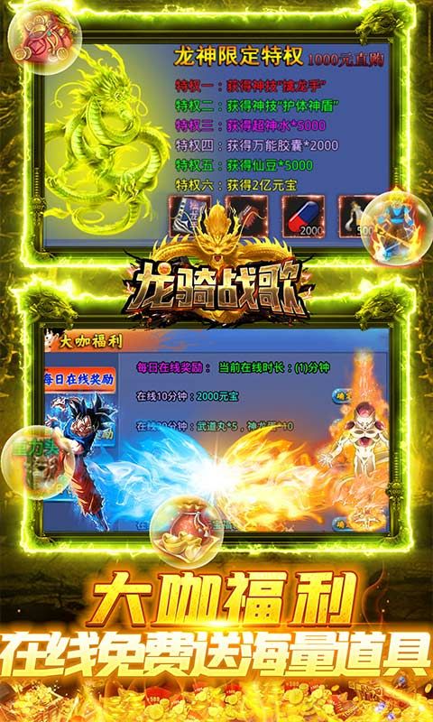 《龙骑战歌(七龙珠无限刷充)》是一款龙珠题材的动漫专属单职业传奇,游戏内所有专属装备全都都靠爆,上线打开福利大厅输入礼包码VIP999、VIP888,免费领取顶赞会员!!!一切必备功能全部免费送:自动拾取、自动回收、自动挂机,绝不逼氪!!!
