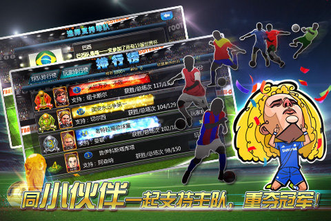 也许此刻你刚刚拿出电梯,啊不,拿出手机,想在感受世界杯进球狂澜之余,用游戏延续一下尚未平复的激情。《啪啪足球》以迅雷不及掩耳盗铃之势来到了你的面前,再也不用设置什么繁琐的球队战术,安排复杂的球员训练,啪啪足球就是要你玩得爽!!啪!啪!啪!球进了~!!