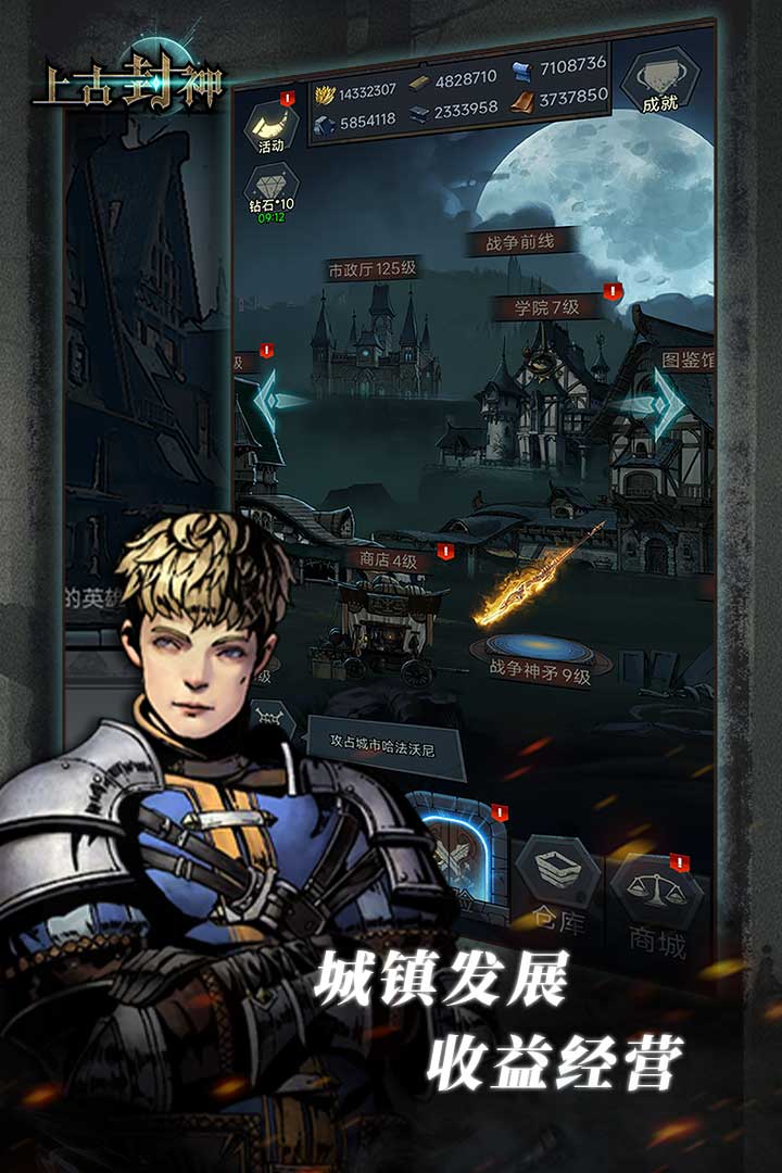 上古封神是一款暗黑风格的回合制RPG单机手游,游戏主线玩法为模拟经营与冒险战略,讲述了中世纪魔法世界亚瑟王沉睡在阿瓦隆之后的故事。在游戏中玩家将扮演这位传奇王者,建立发展自己的城镇,招募英雄,打败邪恶,组织远征军前往世界各地区进行探险。