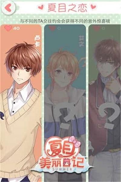 夏目的美丽日记是一款非常独特的女性向恋爱换装手游。游戏中不仅拥有着跌宕起伏的主线剧情,性格各异的冒险伙伴!并且还有独创的恋爱玩法,你可以尽情的在这里与各种性格迥异的少年少女们相遇,创造属于自己的恋爱美好回忆!