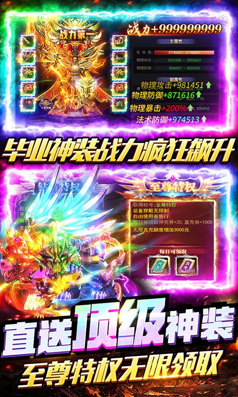 ★上线福利:送绝版称号,顶级时装一套,15阶装备一套、8888888元宝