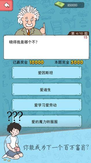 兄弟萌,屌丝逆袭,我们是认真的! 答题赚钱,太上头了,这谁顶得住鸭~ 如果智商不足,被碾压成渣渣,那还不赶紧下载游戏为你的脑子充一波电! 拉上好基友和铁子一起玩,走上人生巅峰,一个足球队的白富美小姐姐为你爆灯。 1、一个答题类的游戏软件; 2、玩家通过回答问题,赚取金钱,可解锁游戏物品; 3、解锁的物品会装饰在家园里,从一穷二白变成高富帅。