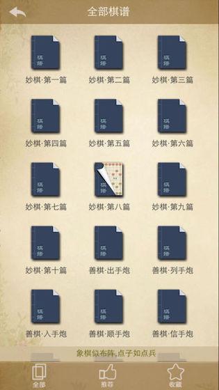 象棋经典棋谱是为广大象棋爱好者精心打造的一款棋谱学习和研究的软件(非电子书亦非视频),包含了学习模式和挑战模式。学习模式可单步演绎和推演上百种民间广为流传的经典棋谱的着法;挑战模式则提供了四个才貌无双的古典美人棋手供玩家挑战。无论擅攻还是善守,在这里都能找到您喜欢的制胜秘诀。操作简单,画面精美,随时随地,打开棋谱,经典对决,时常观摩,受益匪浅。象棋经典棋谱就是一个您随身御用的象棋导师。想快速提升您的棋力和水平吗?象棋经典棋谱就是您的不二首选。