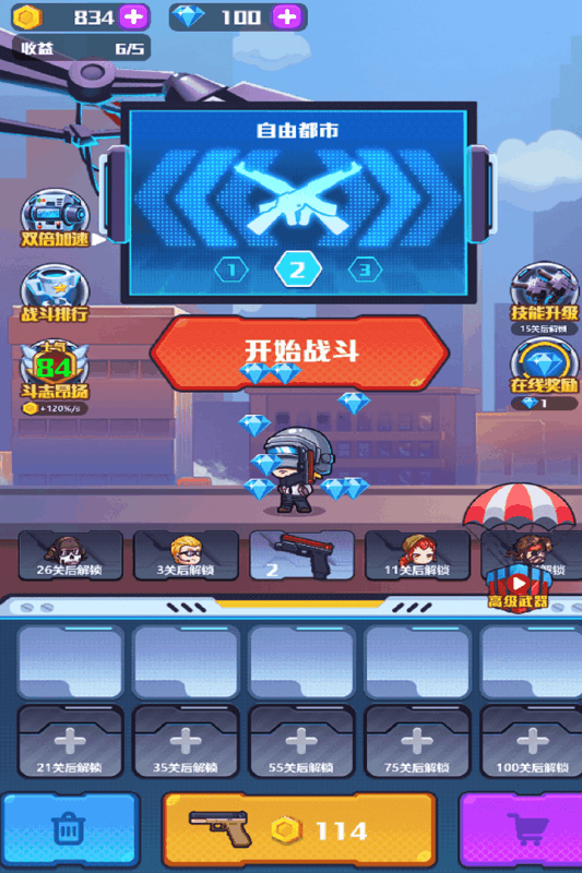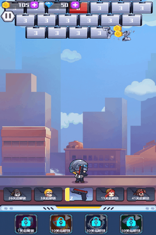 《指尖枪战》融合挂机合成和打砖块等经典玩法于一身,让你充分感受游戏的乐趣。更有数十种武器和超强角色等你体验!快来试试吧!