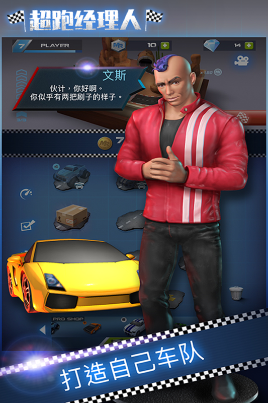 准备好了吗,你即将和我们一起开启属于自己的赛车帝国,来吧!在这里,你既是一家赛车行的经理,同时也是一位出色的赛车手,你需要从0开始组建你的赛车行,招募赛车手驾驶赛车比赛获得收益,利用收益购买新的赛车来打造合成出性能更加出色的赛车。在经营赛车行之余,你还可以驾驶你最出色的赛车去参加比赛,赢得奖励。