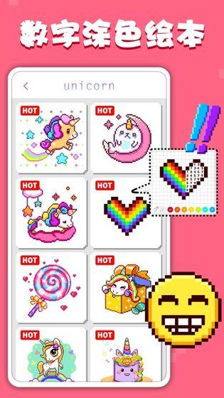 独角兽艺术家像素涂色游戏来了!超多的独角兽绘本!有史以来最令人惊叹和放松的绘图应用!漂亮的色彩,有趣的设计,可爱的绘画本,快来感受最棒最放松的绘画体验,人人都是艺术家! 和朋友家人一起体验绘画填色的乐趣,独角兽、可爱的小动物、卡通、有趣的食物,多种主题供你选择,每个主题配合5种梦幻配色,数字格辅助你完成游戏!不必精通绘画也能成为小小艺术家! 产品特点: - 按照数字格进行填色,简单流畅就能完成各种可爱的图案,完成之后有惊喜哟! - 可以将绘制完成的作品分享到社交网站,与朋友互动! - 完美的休闲体验,在绘画中得到身心放松!是适合全家一起玩的游戏! - 有多重主题可以选择,每个主题都有5个配色,尽情享受画画的乐趣! 订阅价格和条款: 数字填色 - 独角兽涂色游戏提供每周14元的自动续订每周订阅,每月35元的自动续订每月订阅以及每年308元的自动续订年订阅,以提供解锁全部游戏内容并移除广告和其他高级功能。 订阅成功后将会自动续订,并从iTunes账户中进行扣费;如想取消自动续订功能,请在当前订阅期结束的至少24小时之前,于iTunes设置中手动取消该功能。购买订阅之后,所有未到期的试用天数将被强制取消。用户可以在订阅成功后,在本人苹果商店用户账号中管理续订等功能。