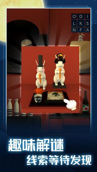 传说中的竹取公主为了躲避皇帝的求婚让月兔们把她藏在了一间和室里 找到公主的人就可以带她逃出去啦 你在这间和室醒来,看似简单朴素的房间实则大有玄机 隐藏在图案后的谜题 需要触发机关和密码才能开启的家具 还有掌握着通往公主房间关键道具的月兔们 想要带走公主,就开动脑筋从月兔手里拿到关键道具,解开房间里所有的迷题吧 古典而精致的场景 -------温馨淡雅的房间装饰,治愈你的眼睛 精巧的谜题设计 -------谜题之间环环相扣,简单的道具,意想不到的用法 优美典雅的背景音乐 -------优雅平和的音乐让人百听不厌 通关之后还可以继续与月兔们捉迷藏哦