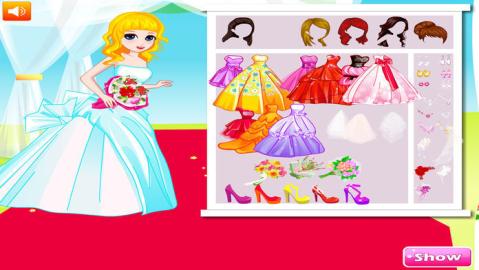 可爱的小女孩和大多数女孩一样,对自己的婚礼抱着诸多美好的幻想,今天她的梦想终于实现了,她要和自己最心爱的热一起步入这幸福的婚礼殿堂。现在我们就去为她送上祝福吧!! 游戏目标 为角色打扮,如果扮得漂亮,别忘了跟大家一起分享!
